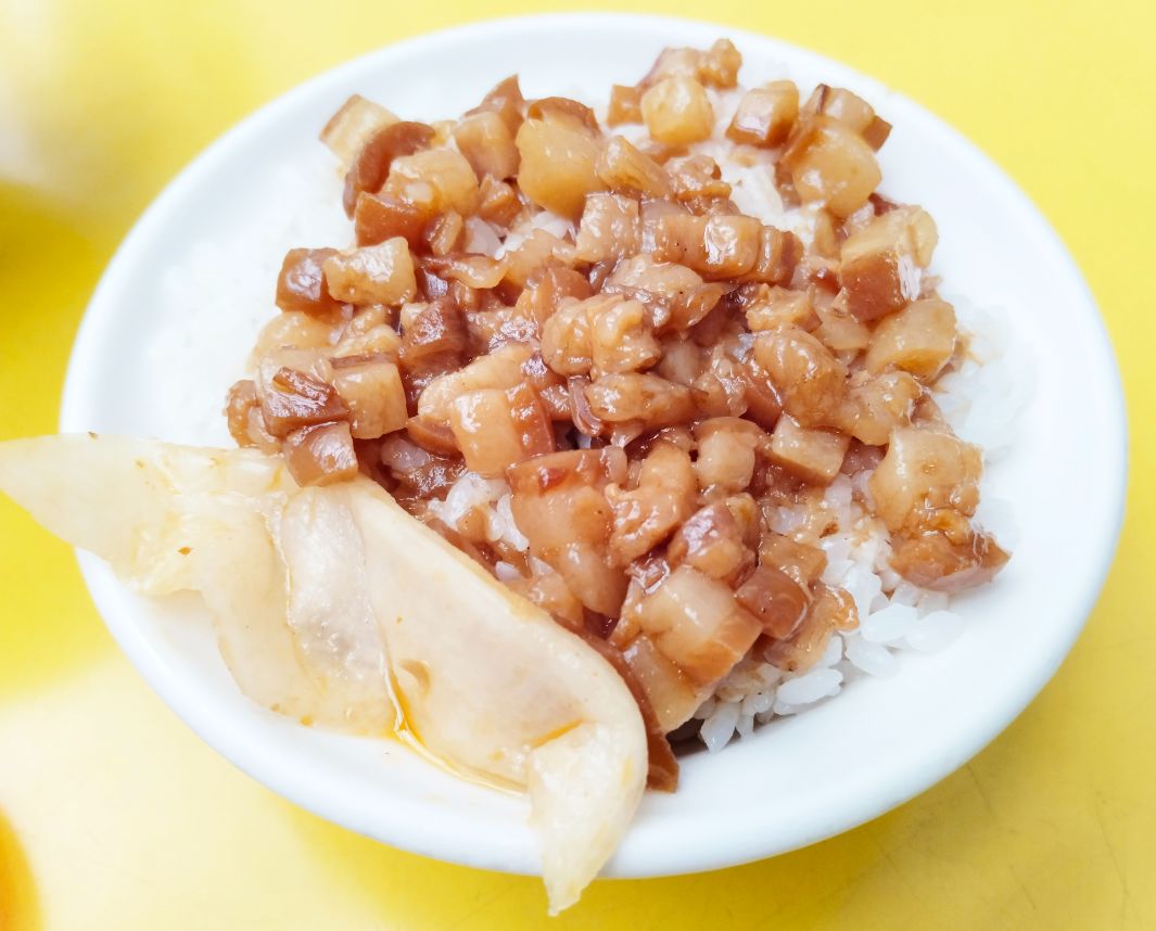 魯肉偏肥,充滿豐腴感,吃起來油脂豐富,滋味鹹香很涮嘴。還搭配爽脆的醃羅葡,吃起來很解膩。