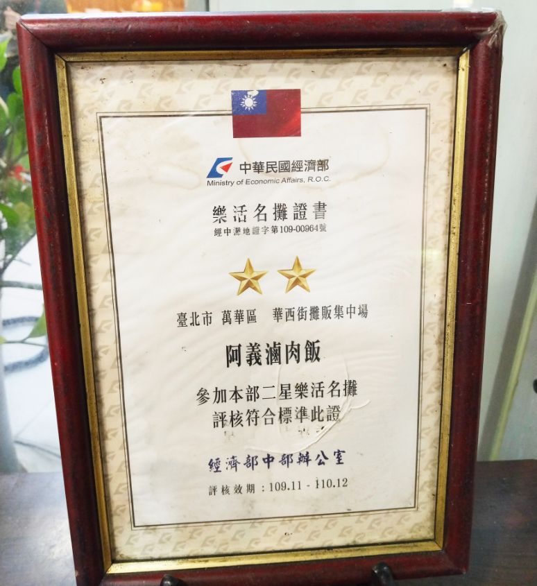 阿義魯肉飯除了入選知名部落客貓大爺推薦美食,也曾在2020年、2023年獲得二星跟三星樂活名攤證書。
