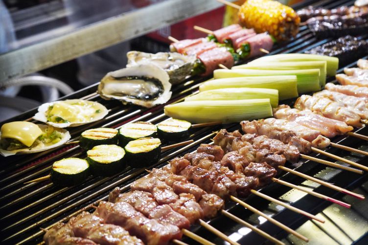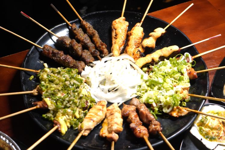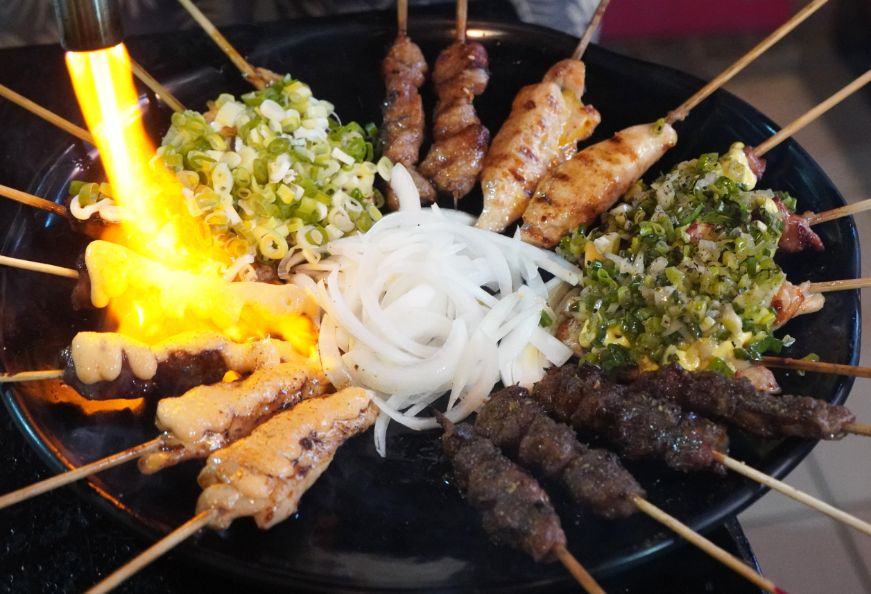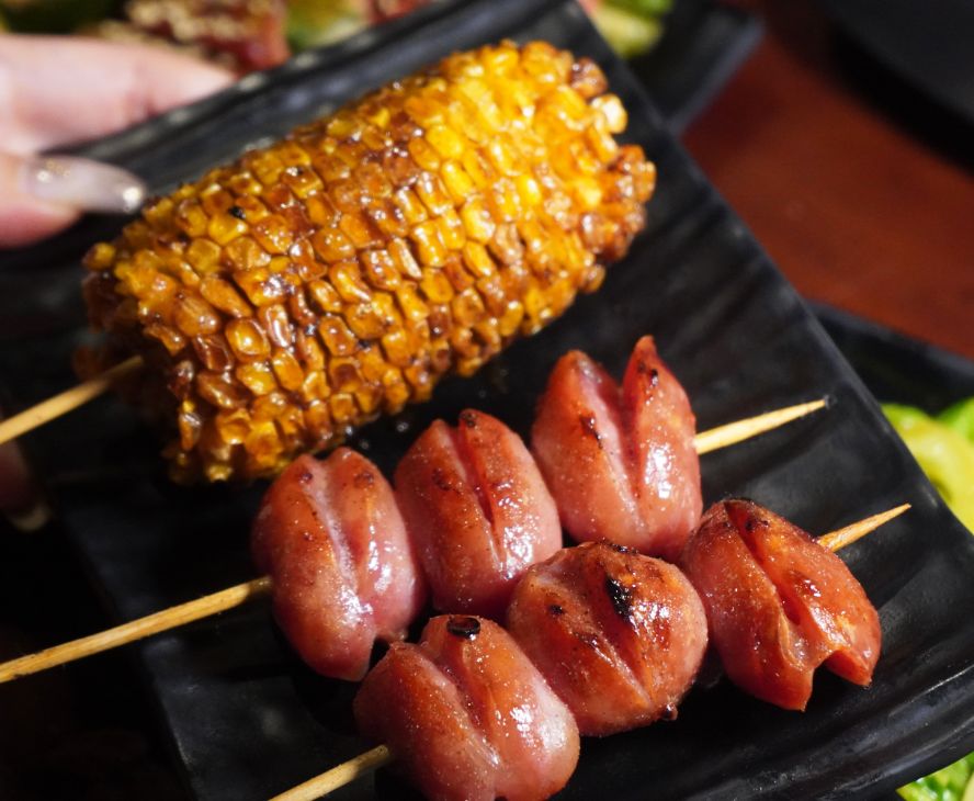 因為是用整塊肉真材實料的處理,所以形狀不一致,一共有牛、豬、雞及羊四種食材,分別加上蔥鹽、明太子增添味道。