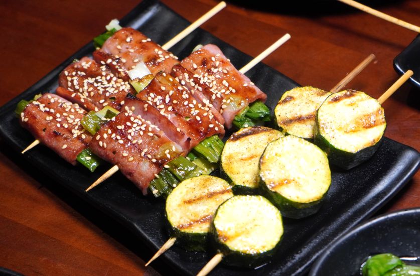 吃串燒一定要點這一道,培根豐富的油質更能襯托蔥的脆甜,節瓜切成一片片,炭烤之後,仍維持它的口感。