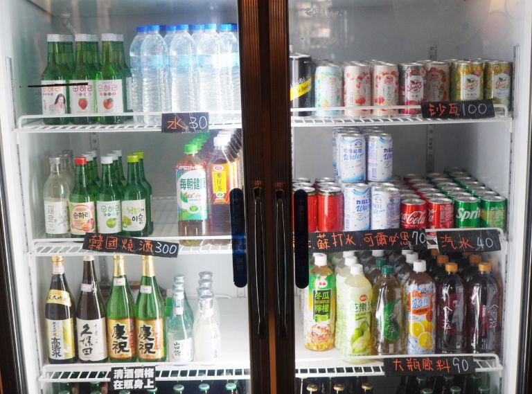 往後走有一個冰箱,除了沙瓦、汽水,還有清酒以及韓國燒酒。