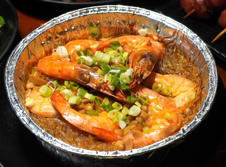 滿滿一大碗,上面鋪滿大尾白蝦,香味十足,肉質鮮甜多汁。底層滿滿的粉絲吸附鮮蝦帶出來的湯汁,吃起來口感Q彈。