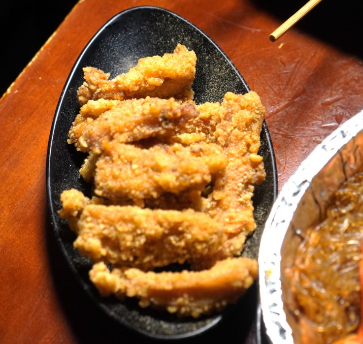 經過酥炸的雞軟骨,色澤金黃,吃起來口感脆,配啤酒很適合。