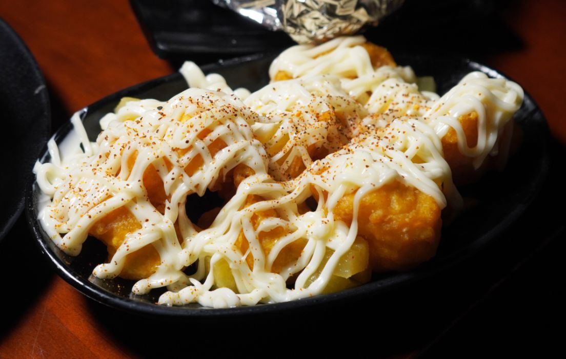 這道料理袁彬推薦必點,因為真的很好吃,馬鈴薯不是切成小塊,而是一個長條狀,上面擺上明太子醬,經燒烤後,明太子鹹香的滋味跟馬鈴薯的軟綿口感很搭配,吃完還會想要再來一盤。