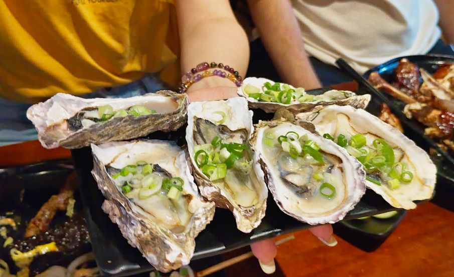 生蠔超大一顆,外型碩大飽滿,搭配蔥花送入嘴中,可以吃到滿滿的海洋鮮甜味。因為太好吃了,所以又加點一盤。