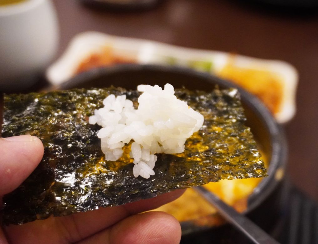 有提供米飯一碗,還準備了海苔讓客人包飯吃。