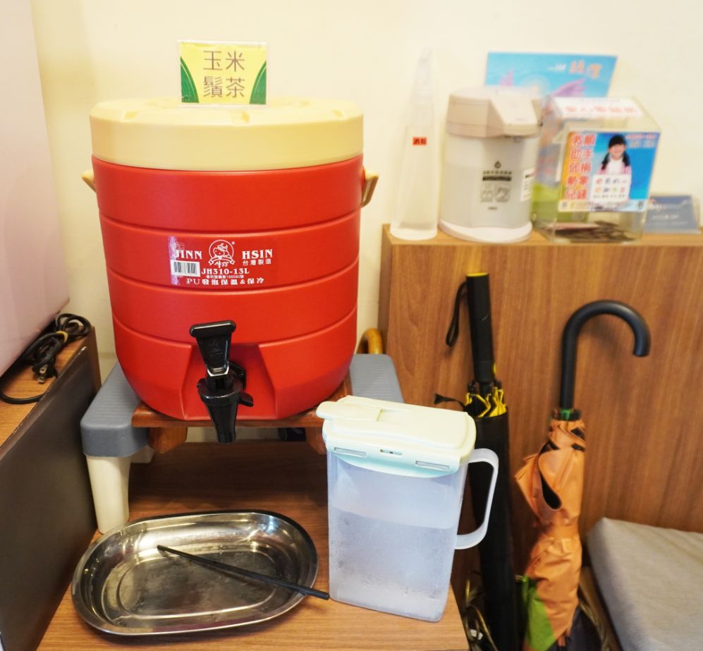 用餐桌椅分成兩側擺放,空間寬敞舒適,店家還提供玉米鬚茶讓客人可以免費飲用。