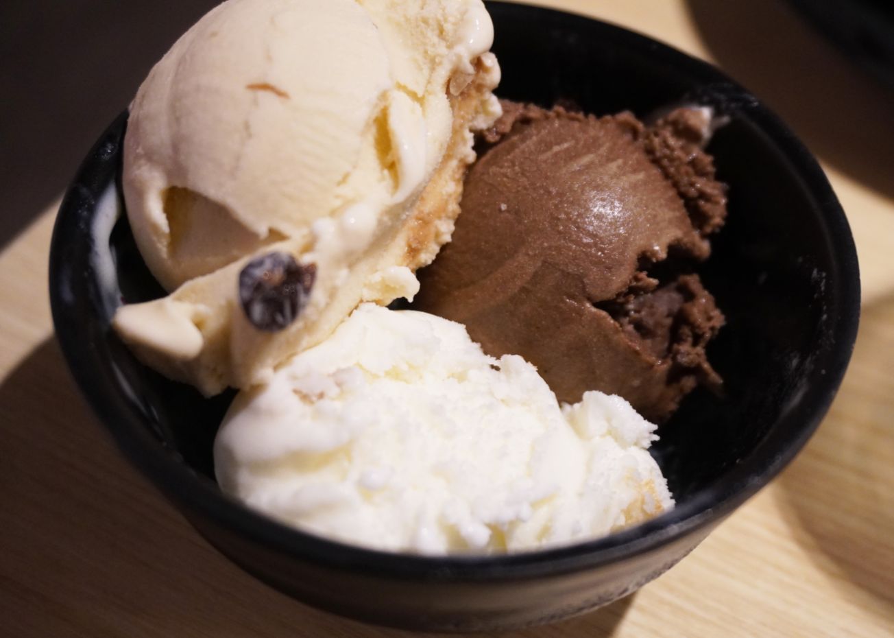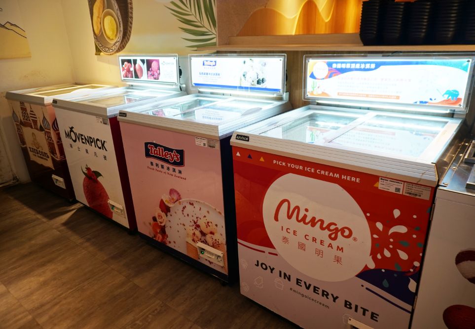 冰淇淋是烤必勝日式燒肉(出一張嘴公館店)一大賣點,共有4種人氣品牌,分別是泰國明果、紐西蘭泰利斯、瑞士莫凡比以及卡比索皇家俄羅斯冰淇淋。