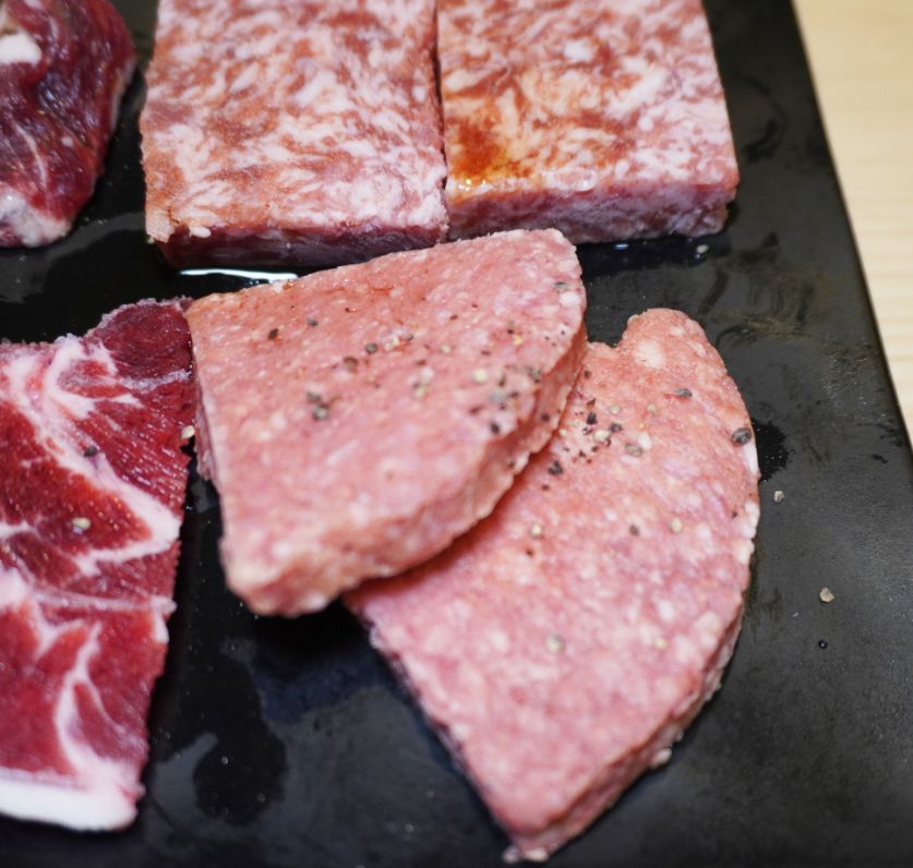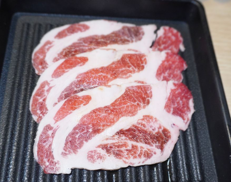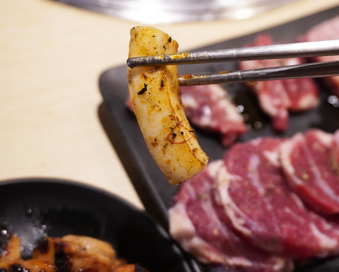 切的薄薄一片,烤起來肉質鮮嫩,不吃牛的友人也吃得很開心。