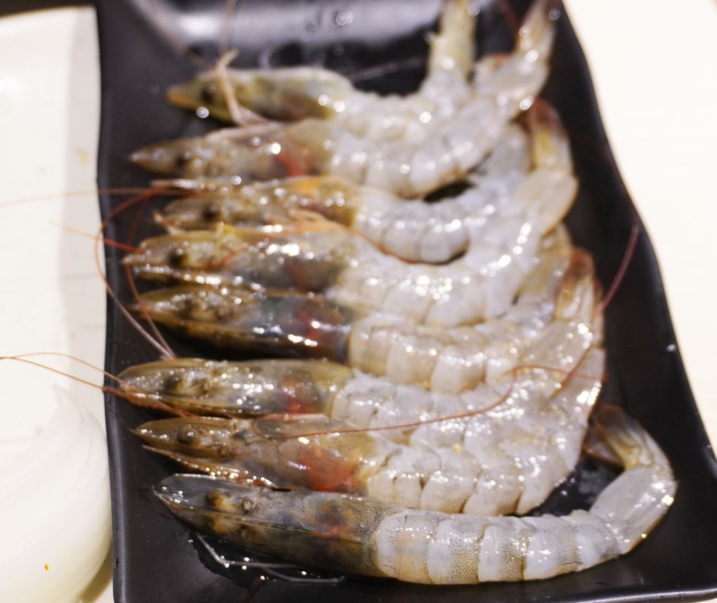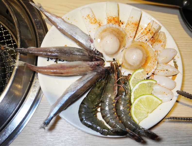 袁彬另外還點了懶人愛吃蝦,很有創意的海鮮燒烤食材,也就是剝好蝦殼的蝦子,在烤架圍一圈,炭火烤過,肉質鮮甜,好吃!