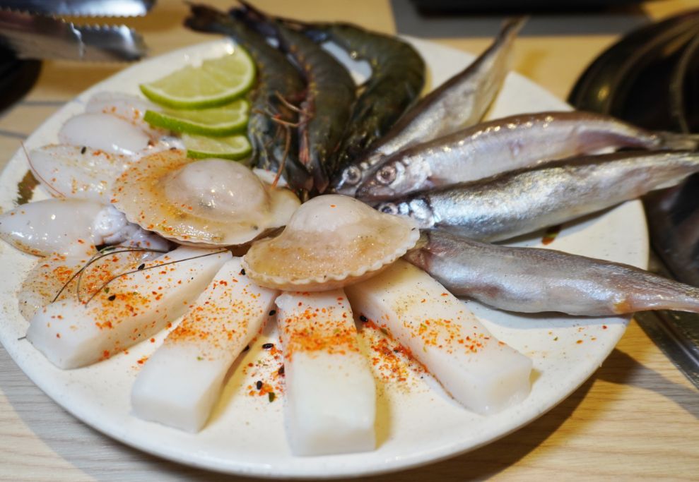 在海鮮盤除了能夠吃到柳葉魚、鹽烤草蝦、QQ小花枝以及椒鹽扇貝。還可以吃到椒香飛卷,吃起來口感豐富,帶有濃厚椒香味。