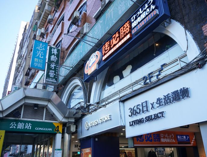 出一張嘴公館店的店面位於公館捷運站4號出口,一走出捷運站就能看到出一張嘴的招牌,騎樓下也有明顯的指引標誌。