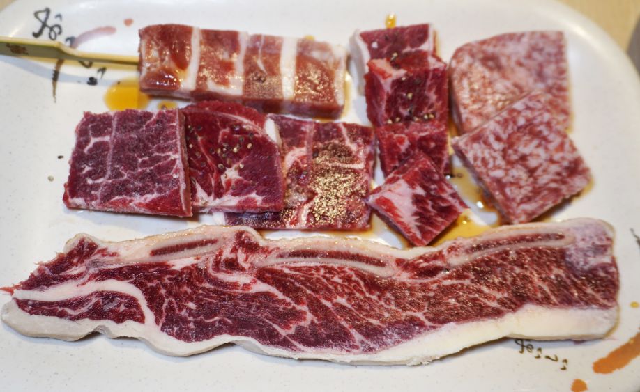 帶骨牛小排、骰子牛以及鴨肉串
