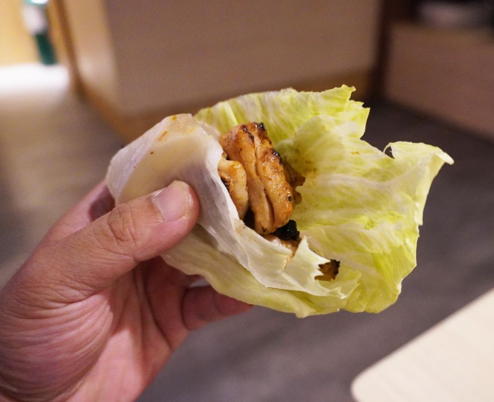 除了單吃,也可以用美生菜包著吃,也很有味道。