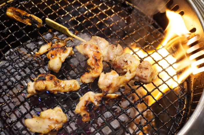 骰子牛吃起來肉質鮮甜,鴨肉串經過炭火烘烤,吃起來口感好
