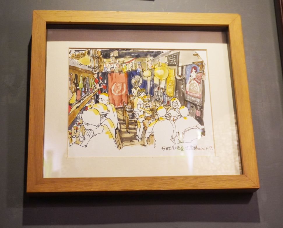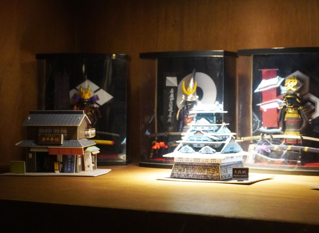 牆上除了有日本清酒品牌的海報,還有畫家繪製居酒屋的插畫作品,另外還有日本城堡跟武士的玩具模型,充滿濃濃的日式風味。