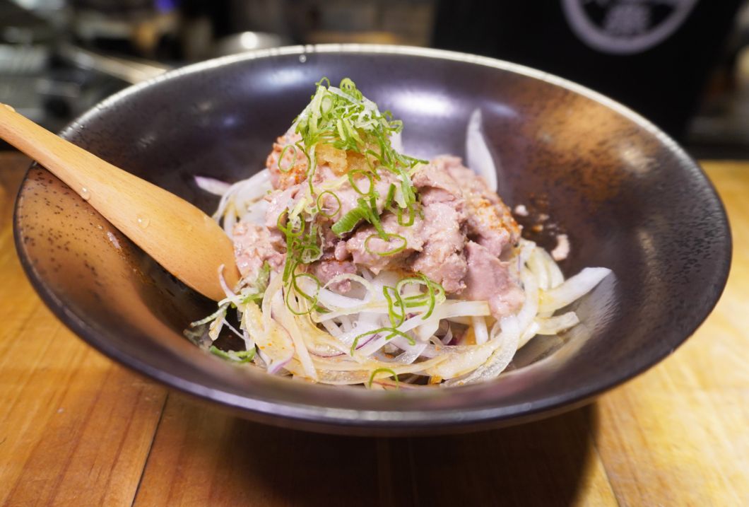 鱈魚肝給的量多,以爽脆的洋蔥絲為底,淋上清爽的醬汁,吃起來鮮味十足,微微的嗆,超開胃。
