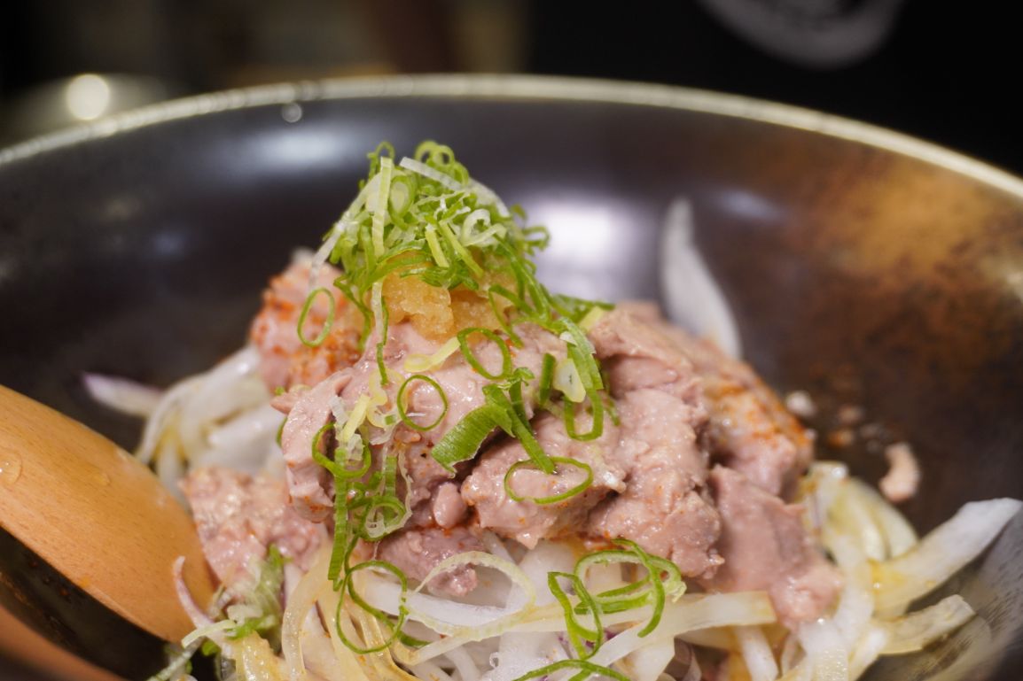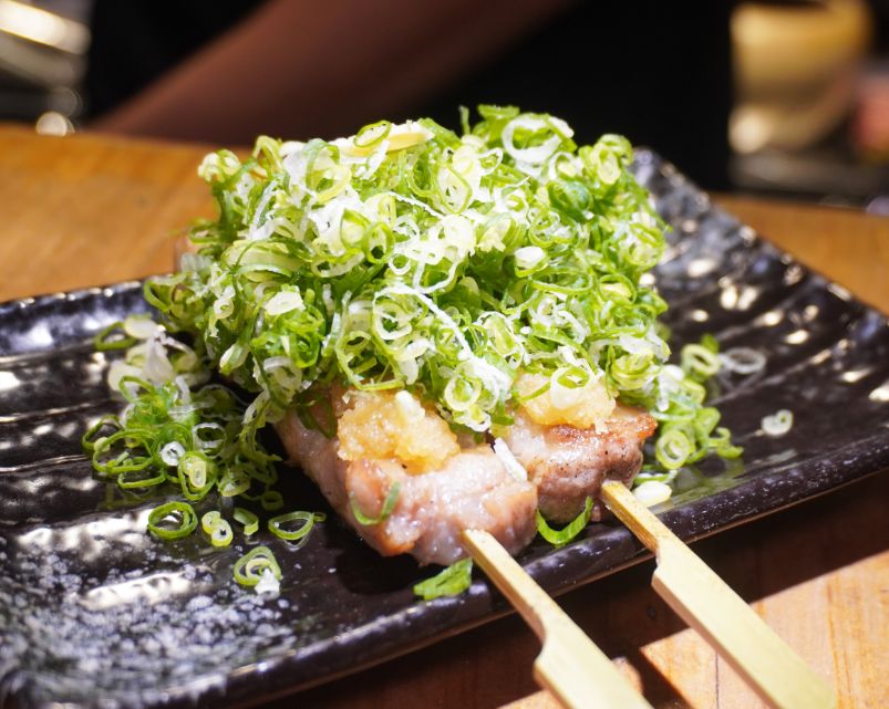 使用台灣小黑豬進行碳烤,加上特製醬料,上面擺上滿滿的蔥花跟蒜泥,吃起來味道豐富有層次,好吃!