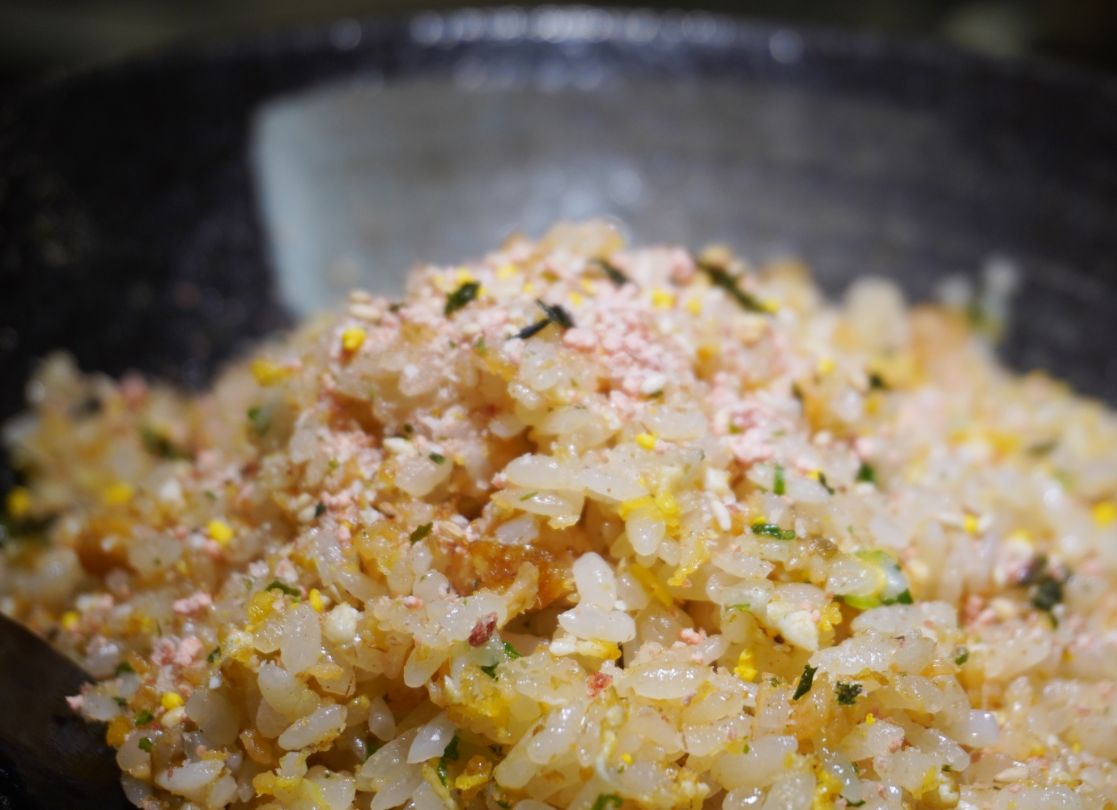 廚師炒功一流,加入鮭魚肉的炒飯經過高溫翻炒,上桌前會灑上香鬆,吃起來粒粒分明,帶有滿滿鑊氣。