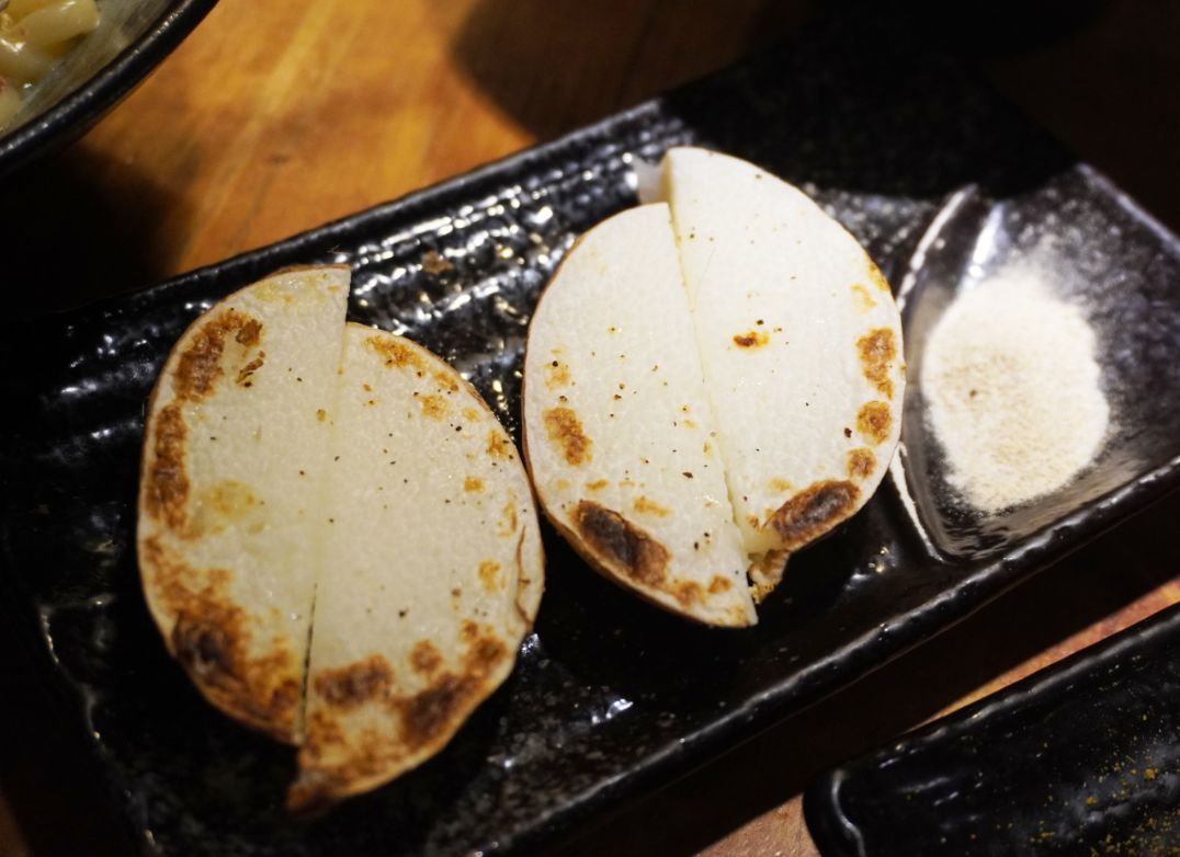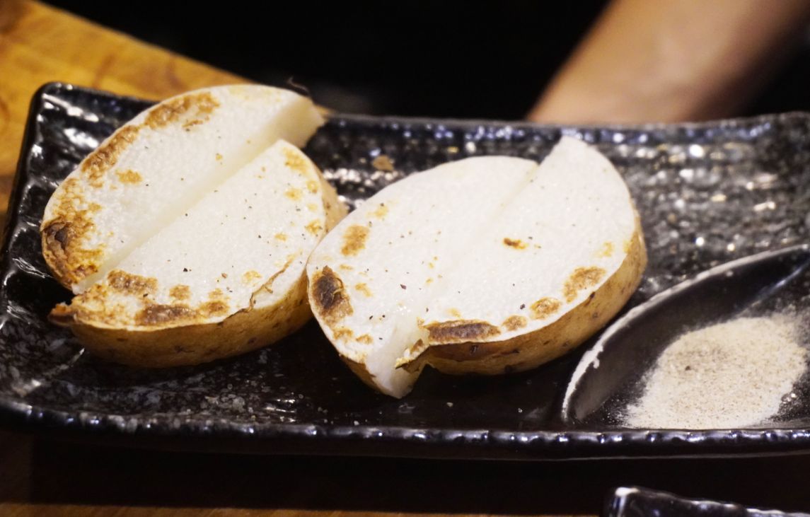 山藥切成塊狀,撒上椒鹽,咬上一口,可以吃到脆甜的滋味。
