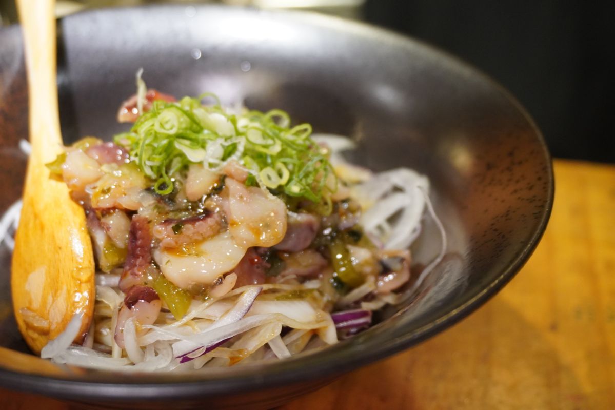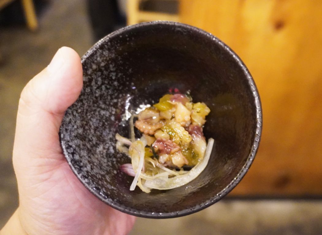 吃起來滋味微嗆,章魚口感脆,很下飯。