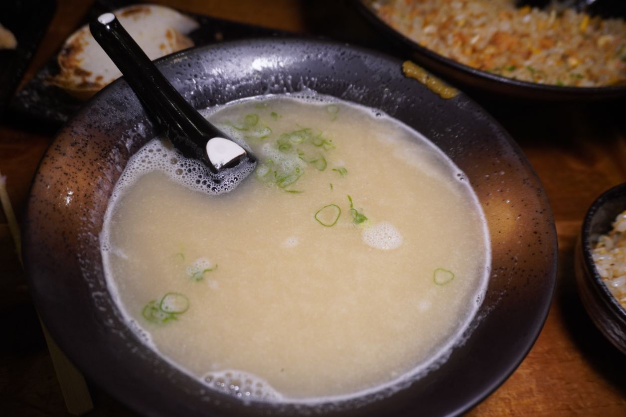 喝起來滋味濃郁鮮甜的雞白湯,熱熱的喝很暖身。