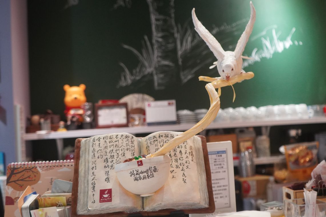 分別呈列在櫃台跟牆面,像是聖經、小天使裝飾,超有趣