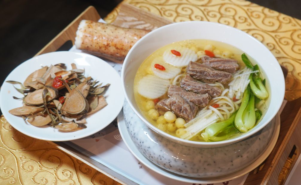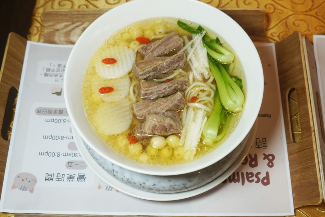 加了牛奶埔,蓮子及枸杞熬煮的湯頭,帶有清甜的滋味。除了精心熬煮的湯頭,還加入切成片狀的日本山藥,口感脆甜。