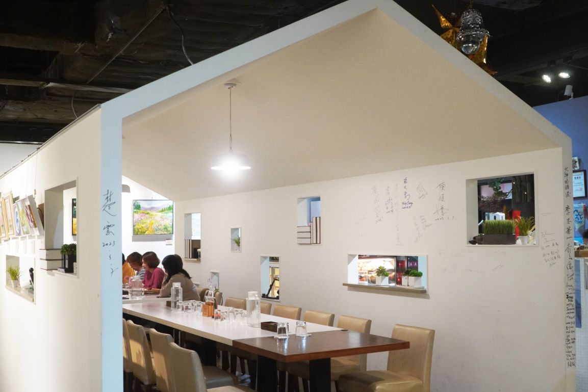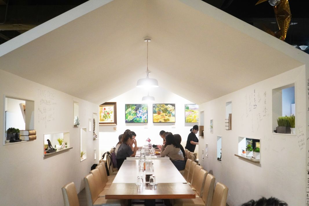 店內有多個包廂空間,可供家族聚餐,中間還有一棟白色小屋,營造出如家的氣氛,特別溫暖。