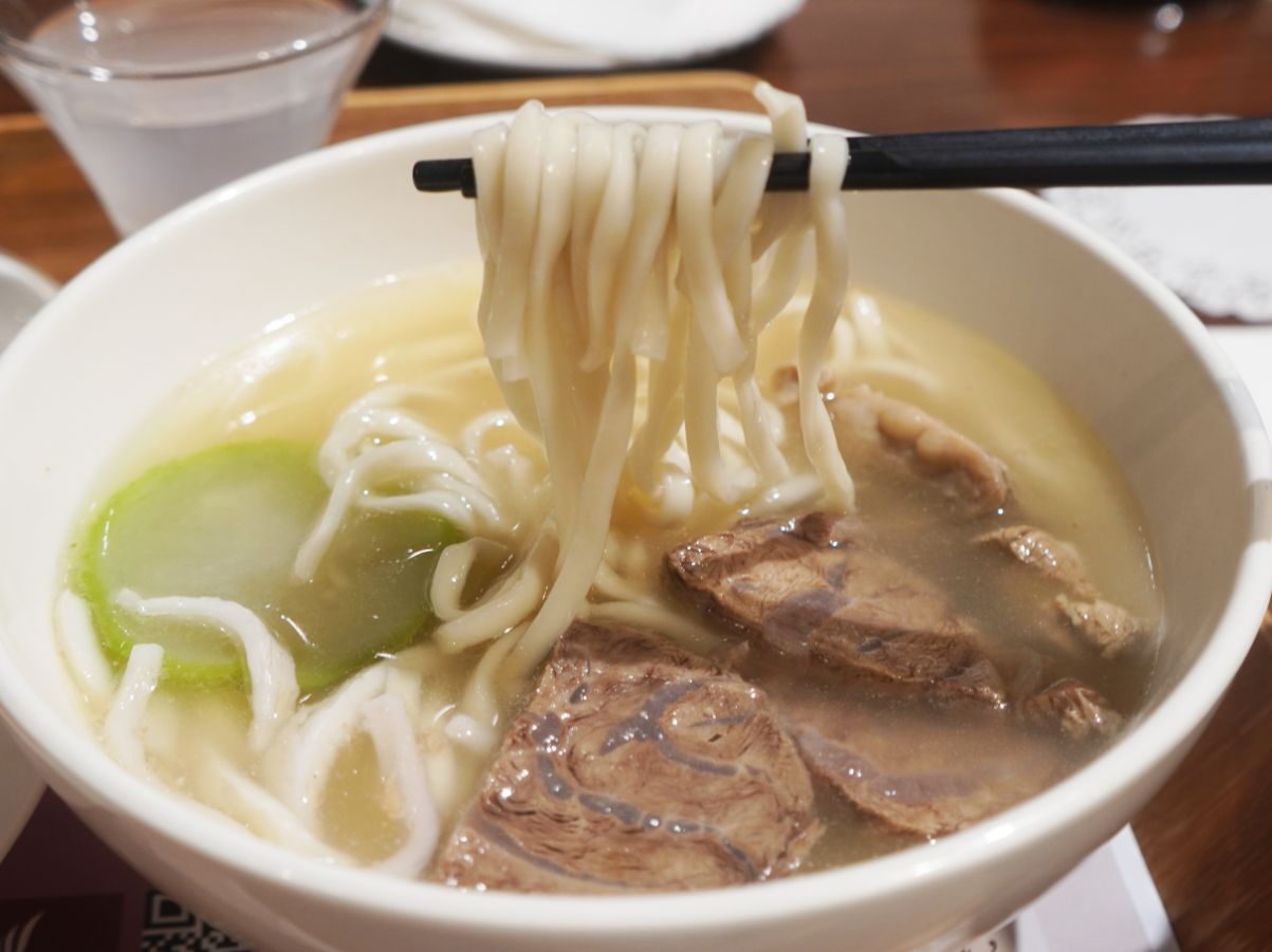 麵條吃起來口感Q彈有嚼勁,選用牛腱肉跟牛肋條,吃起來口感軟嫩多汁。