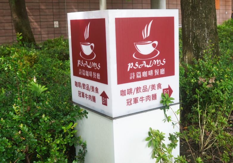 走出中正紀念堂捷運站6號出口,往國家圖書館走去,路上可以看到詩篇咖啡餐廳的招牌。