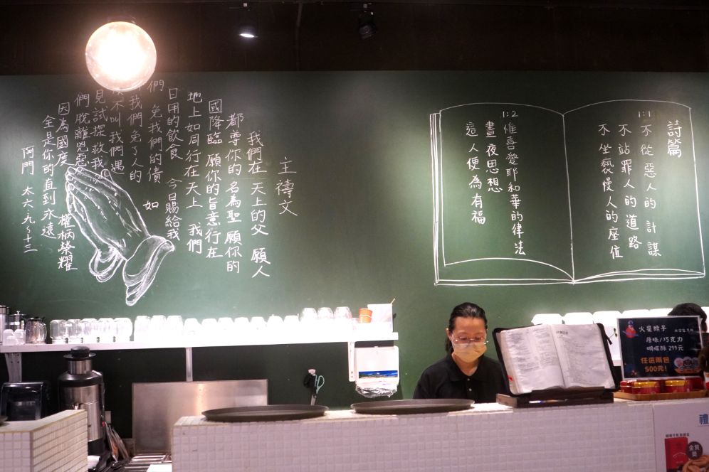 除了店名取自於聖經中間的篇章,也有許多跟基督教信仰相關的擺設布置。