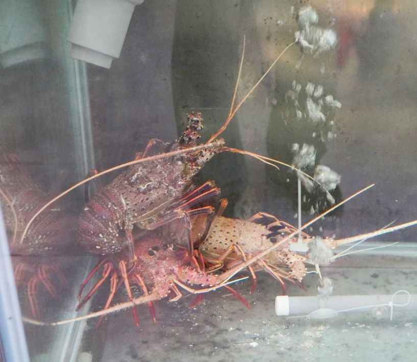 走進店內,右側擺上好幾缸活體養殖箱,除了波士頓龍蝦,還有石斑魚等海鮮,海鮮都是現點現處理。