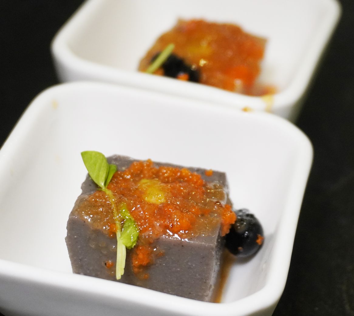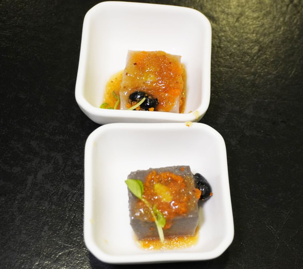 共有2個客家豆腐,分別是芝麻跟花生口味,上面淋上和風醬,鹹甜開胃。