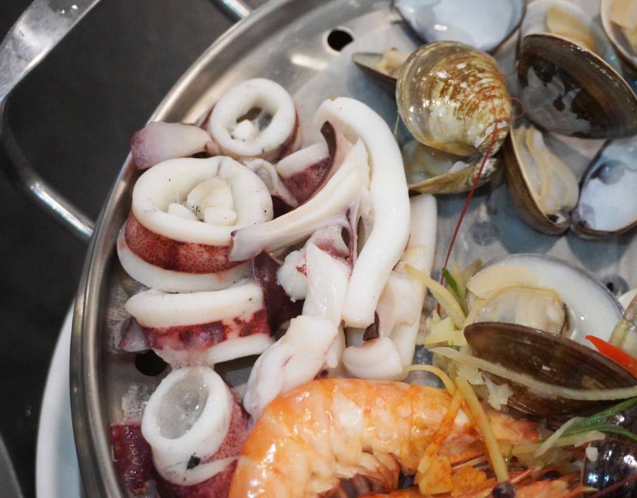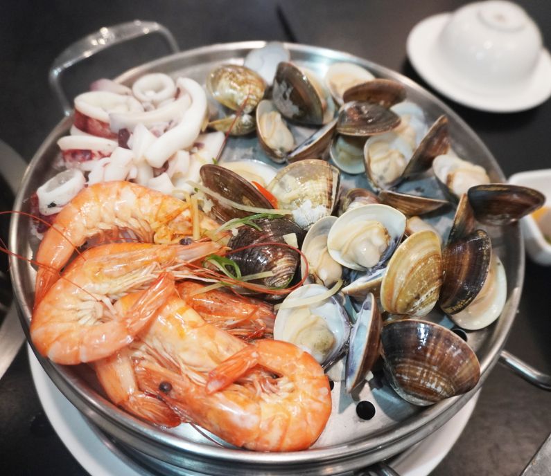 逛完新北耶誕城就來這邊吃美食!蒸天下海鮮蒸氣火鍋,曾被旅行應援團推薦跟報導,海鮮都是現點先撈,除了蝦子,小卷跟蛤蠣,還有波士頓龍蝦,經過蒸煮,肉質口感Q彈多汁,鮮味滿滿。