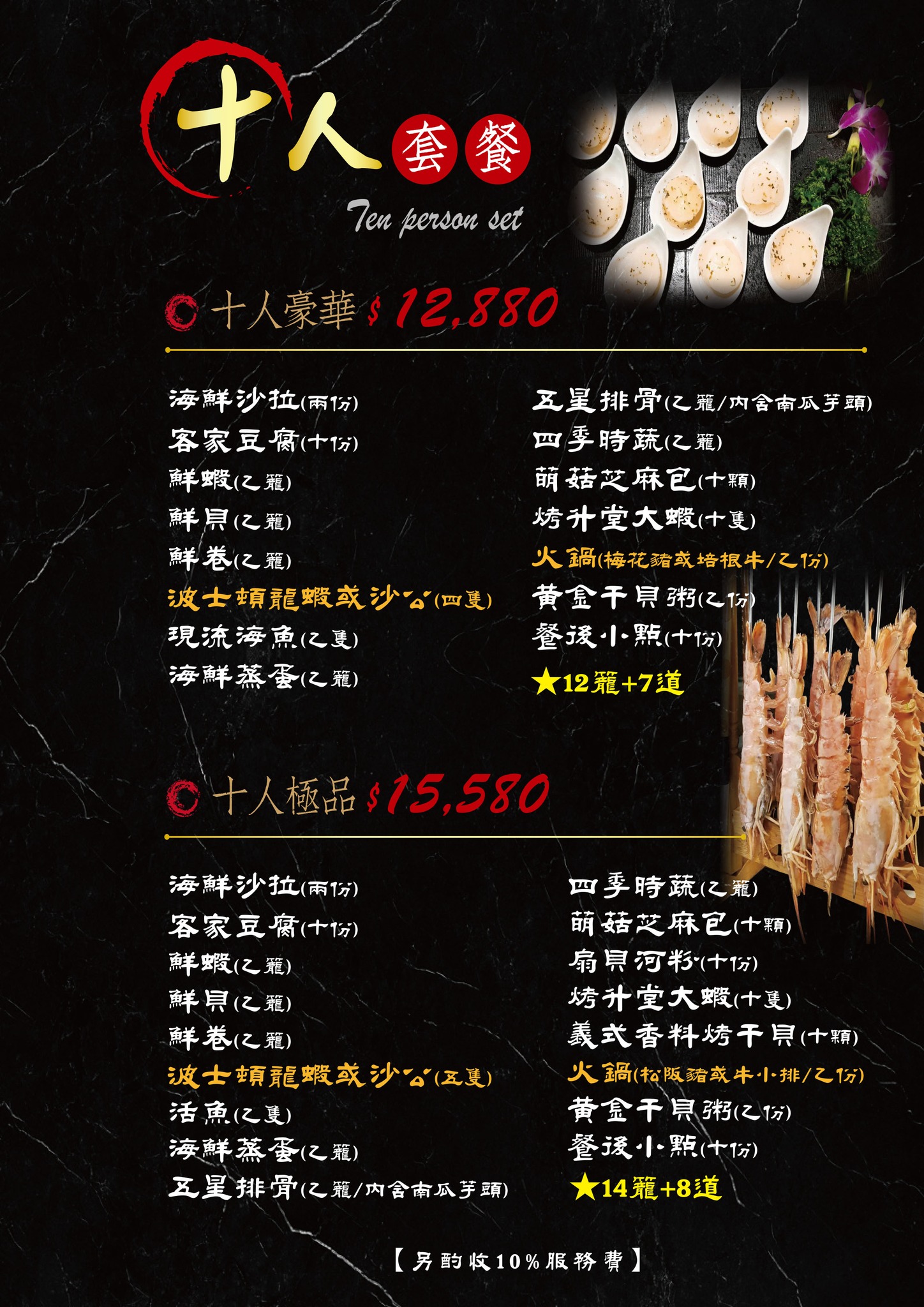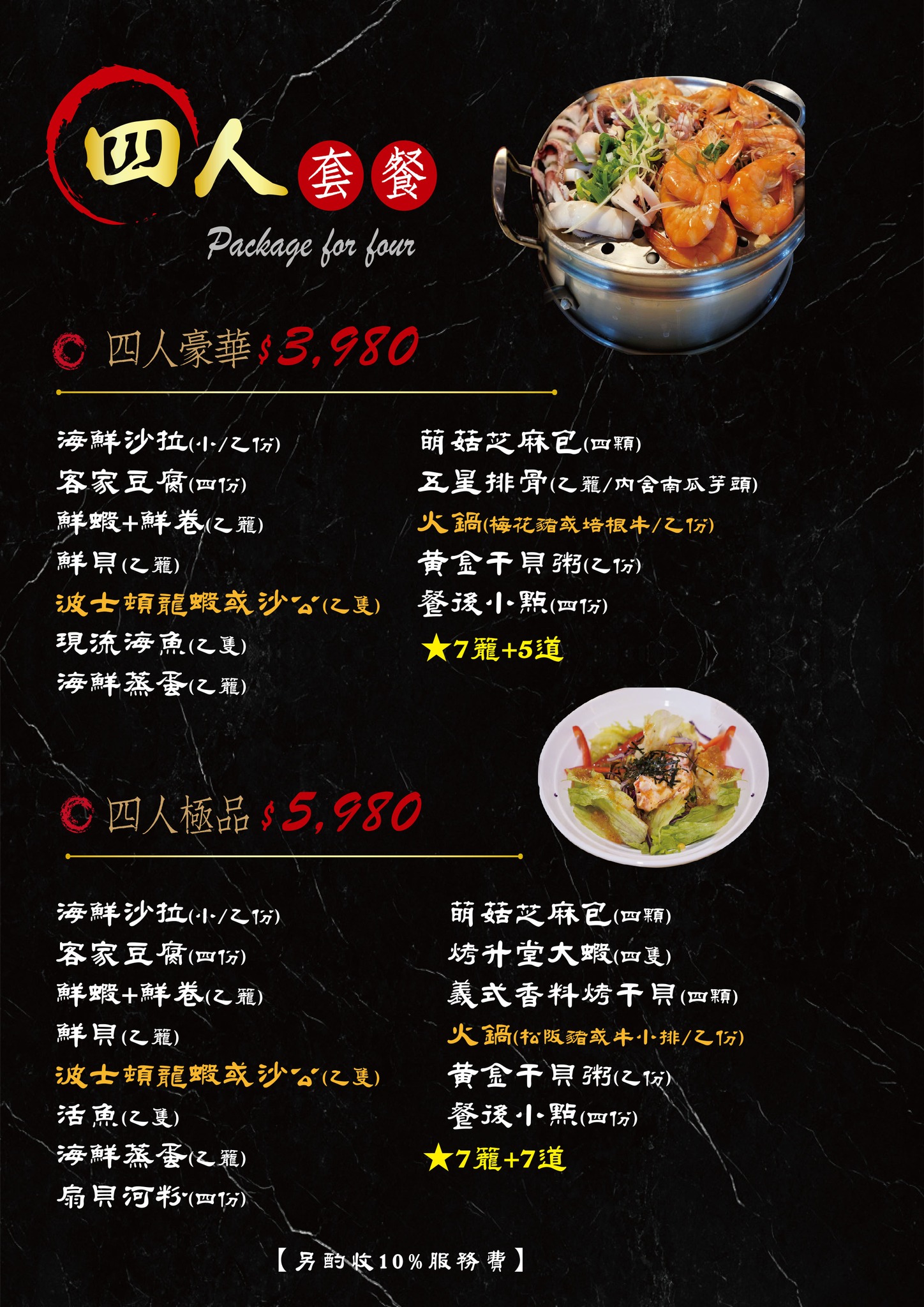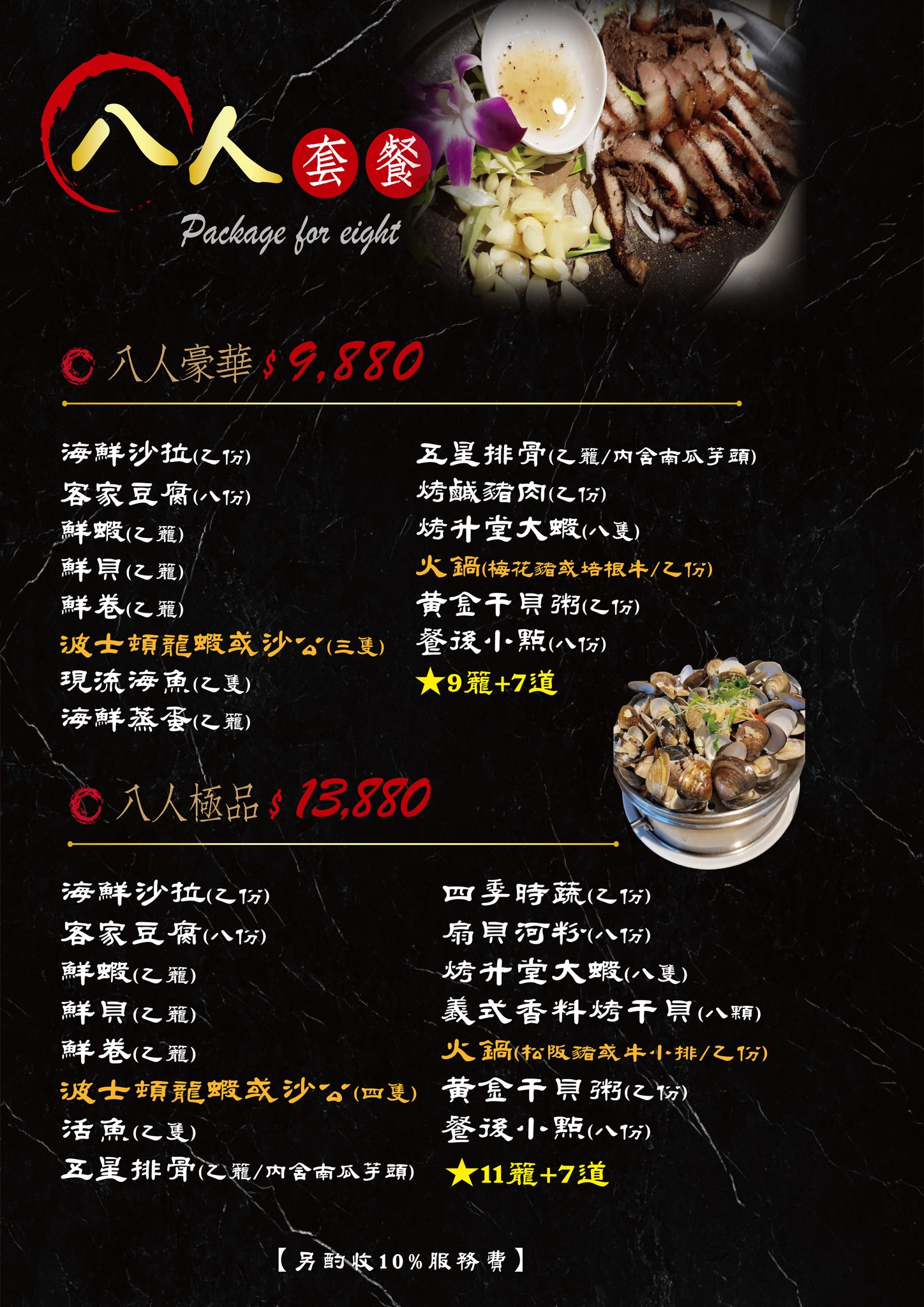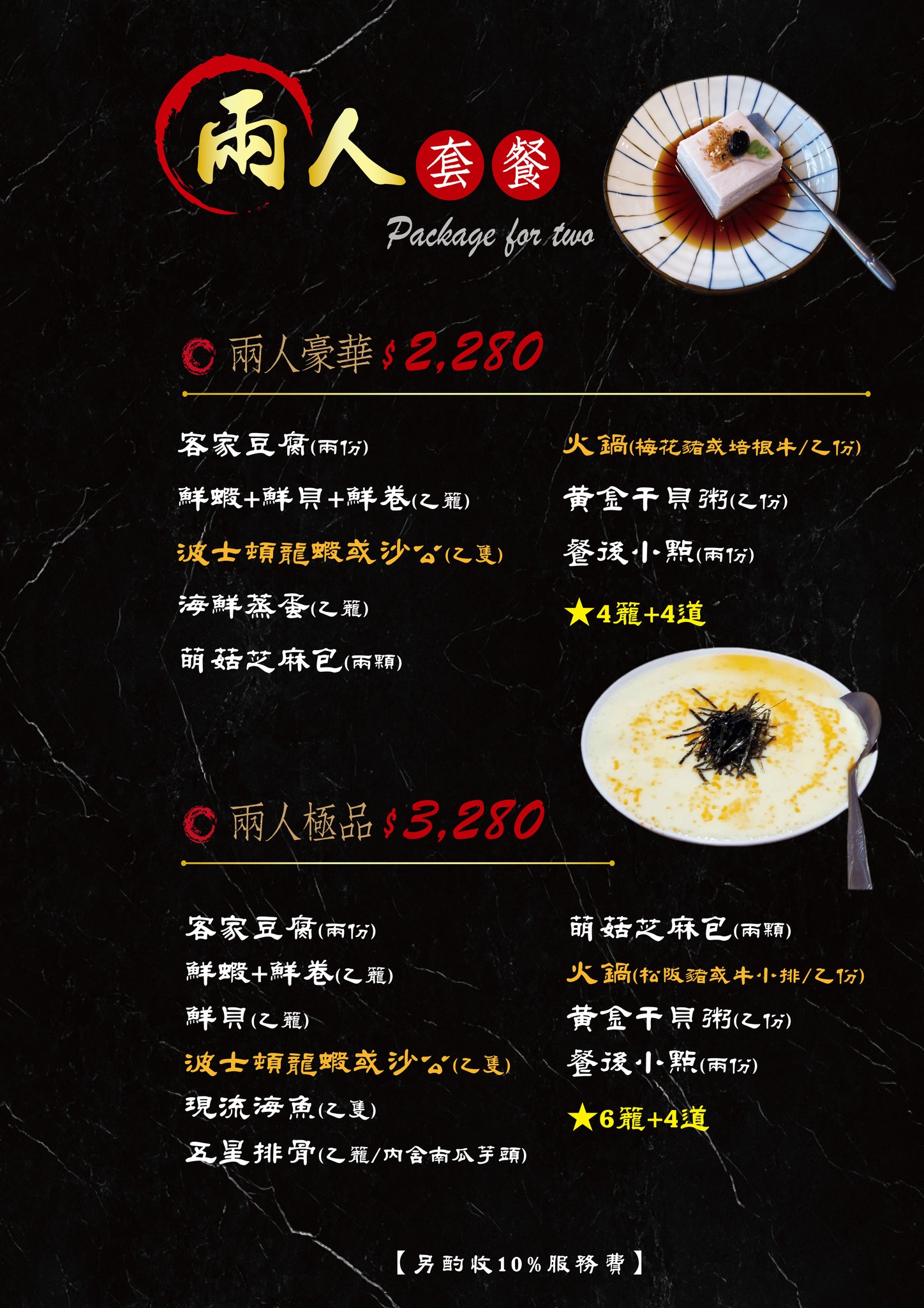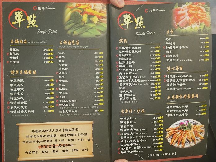 專人桌邊服務,吃完海鮮,海鮮蒸蛋,再利用清蒸海鮮留下來的湯汁,煮蔬菜涮肉片,最後加上米飯,小魚干及干貝絲,雞蛋及蔥花做成黃金干貝粥,味道豐富有層次,一鍋三吃,已經列入袁彬二訪名單。