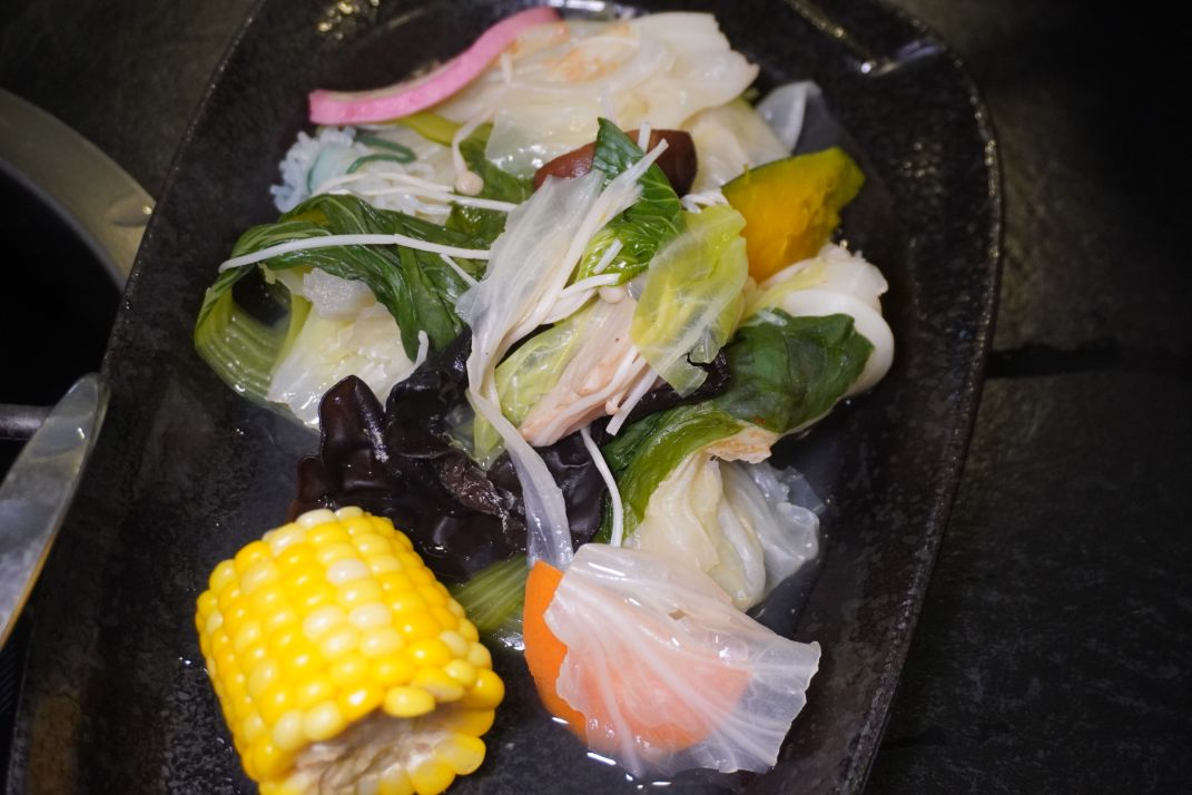 除了玉米,還有魚板、木耳、高麗菜以及南瓜等蔬菜,增添湯頭鮮甜的滋味。