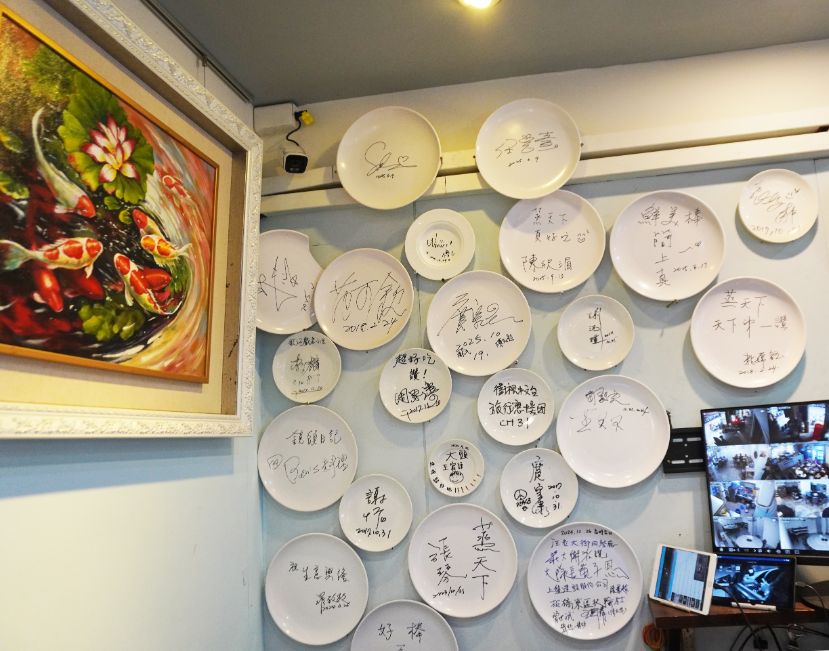 結帳櫃台在養殖箱旁,後方簽名牆可以看到庹宗康,張琴等藝人的簽名。除了1樓用餐區有10人座圓桌,地下一樓則有多張10人座圓桌,很適合尾牙聚餐及家族聚會。