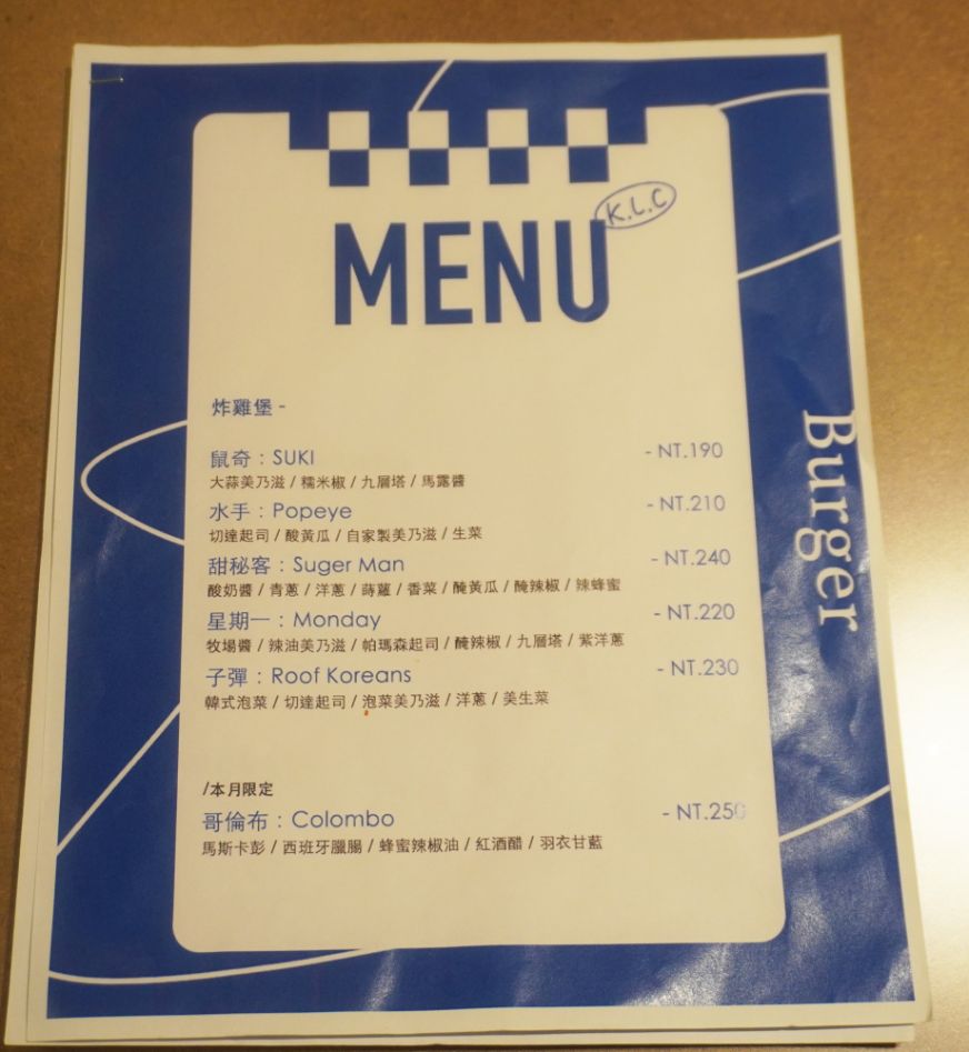 基隆炸雞堡推薦,隱身於仁愛區崇安街巷子的SUKI Burger,提供創意炸雞堡、薯條、飲料及啤酒等料理,櫃台前方還有一個五星快餐車的電影海報。