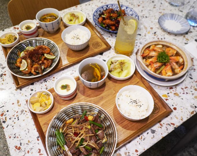 新竹聚餐餐廳推薦,超有氣氛感的台菜餐廳,湯明茶樓新竹店,隱身於50年老宅內,老宅經過翻修,加入現代摩登元素,呈現具有質感的用餐環境,提供的台菜料理品項豐富多樣,除了可以多人點合菜,也有一個人可以品嚐的新式台菜定食。