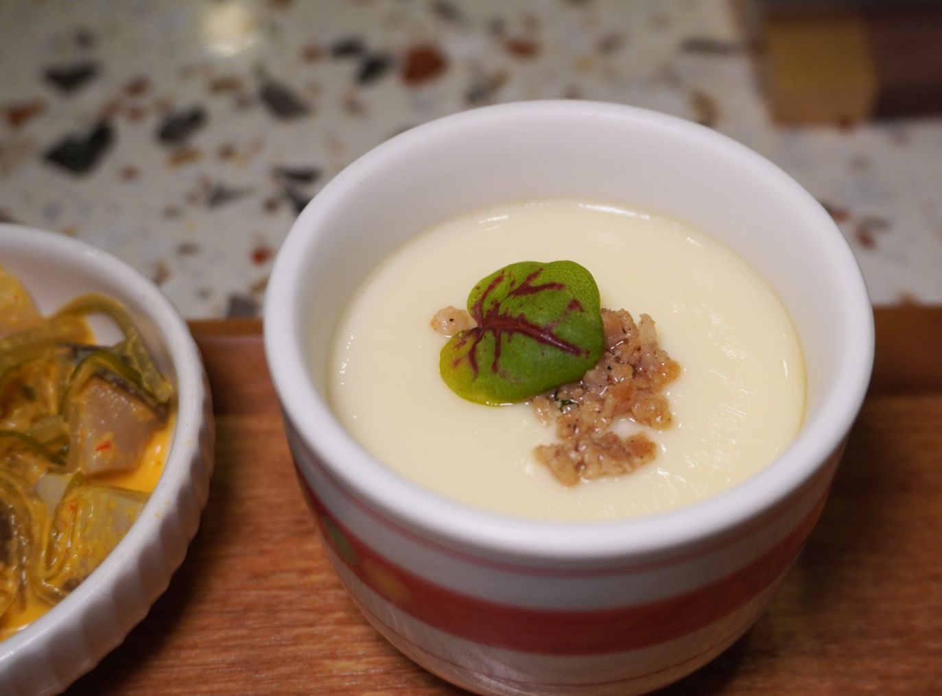 升級輕奢個人套,一樣有茶碗蒸、兩道風味小菜、金針排骨湯以及湯明手作茶凍。
