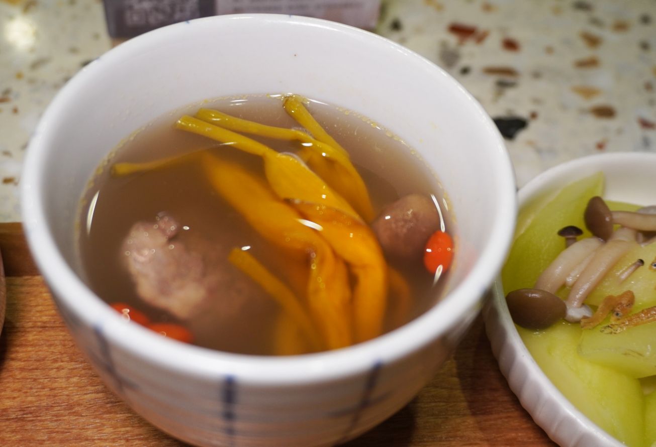 金針枸杞排骨湯,湯頭鮮甜順口,排骨煮到軟嫩好入味。