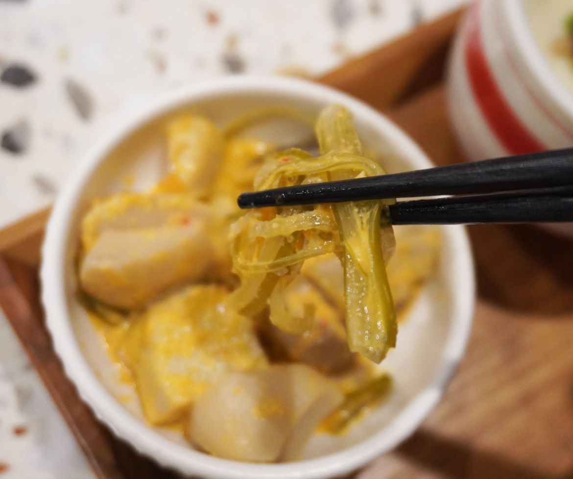豆腐跟粉絲吸附蒜蓉的湯汁,豆腐口感軟嫩,襯托著粉絲的Q彈口感,滋味鮮香。