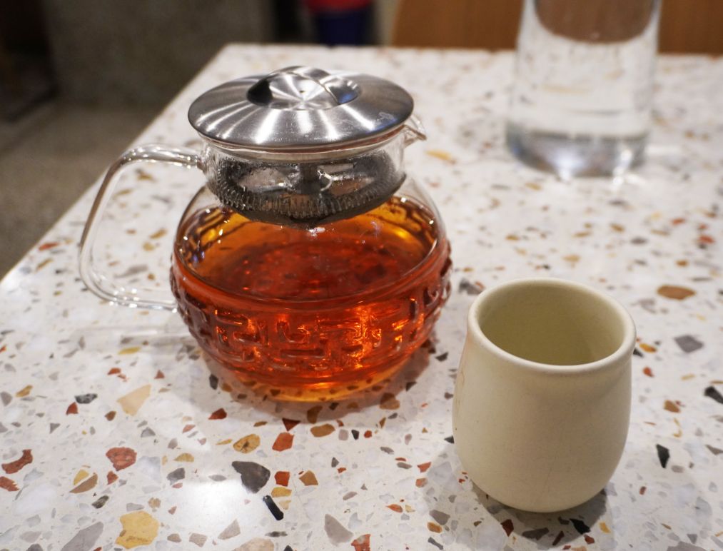 點套餐就會提供兩款200元的飲品,袁彬挑選的是凍頂烏龍的熱泡茶,喝起來很順口,帶有糯米香氣。