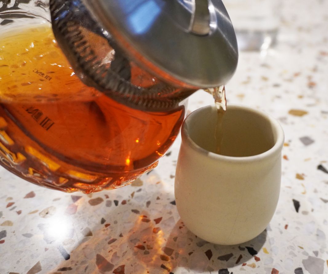 選用頂級四季春去製作,茶湯呈現金黃明亮,喝起來味道清新,帶有韻味,滋味柔順甘甜,搭配鬆餅跟布丁都適合。