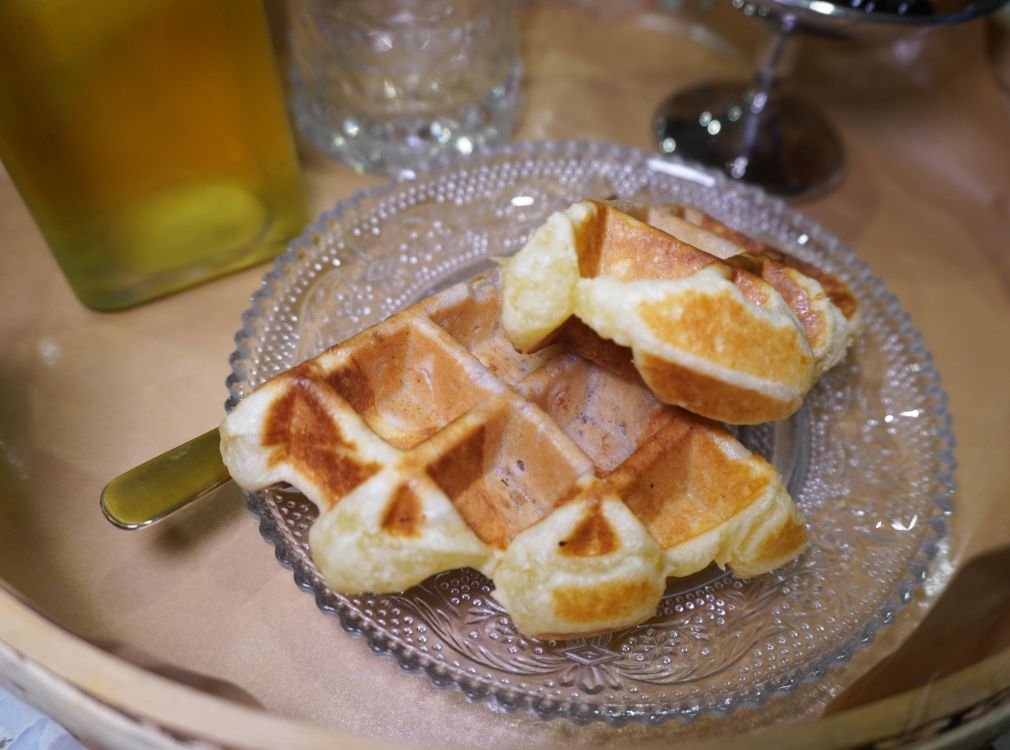 鬆餅吃起來口感厚實,帶有麵粉香氣。