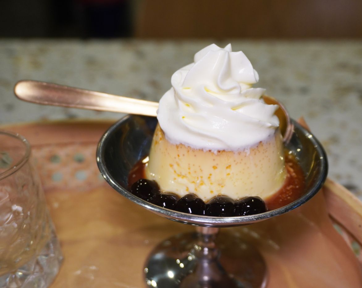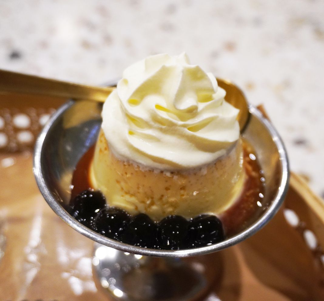 布丁口感綿密滑順,淋上焦糖,擺上口感Q彈的珍珠,滿滿的鮮奶油,味道更顯豐富。