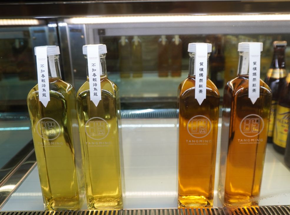 湯明茶樓販售多款茶飲,採用嚴選台灣好茶,以原葉現泡,有冷淬茶跟熱泡茶可供挑選。