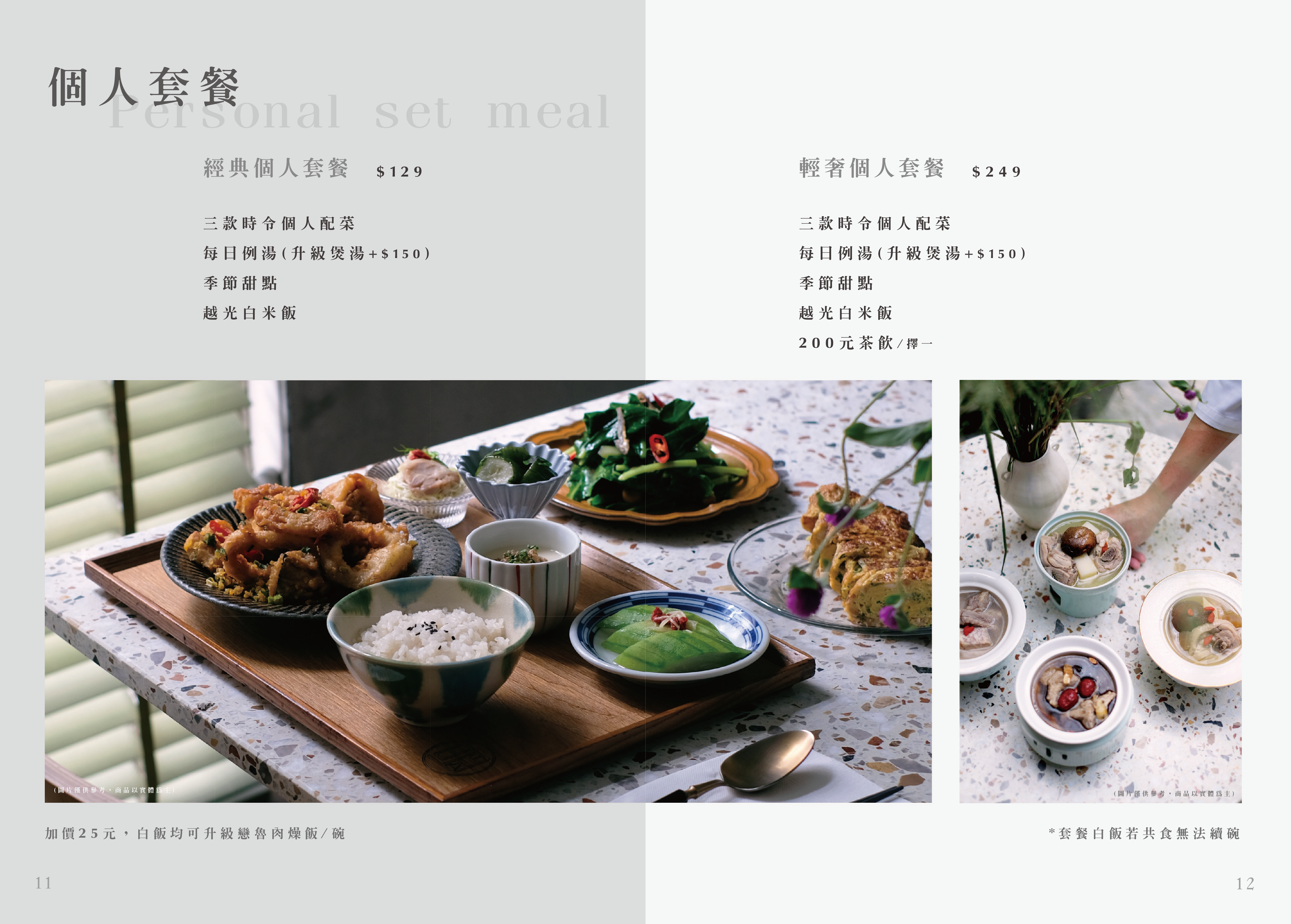 加249元,就可以升級成輕奢個人套餐,還附加茶碗蒸、兩道風味小菜、金針排骨湯以及湯明手作茶凍。