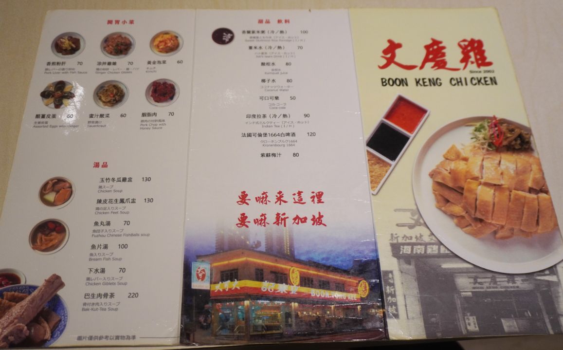 作為新加坡文東記台北直營店,提供道地的新加坡海南雞飯、咖哩肉丸以及胭脂肉等美食,也因此店門口才敢寫上「要嘛來這裡,要嘛新加坡。」這段標語。
